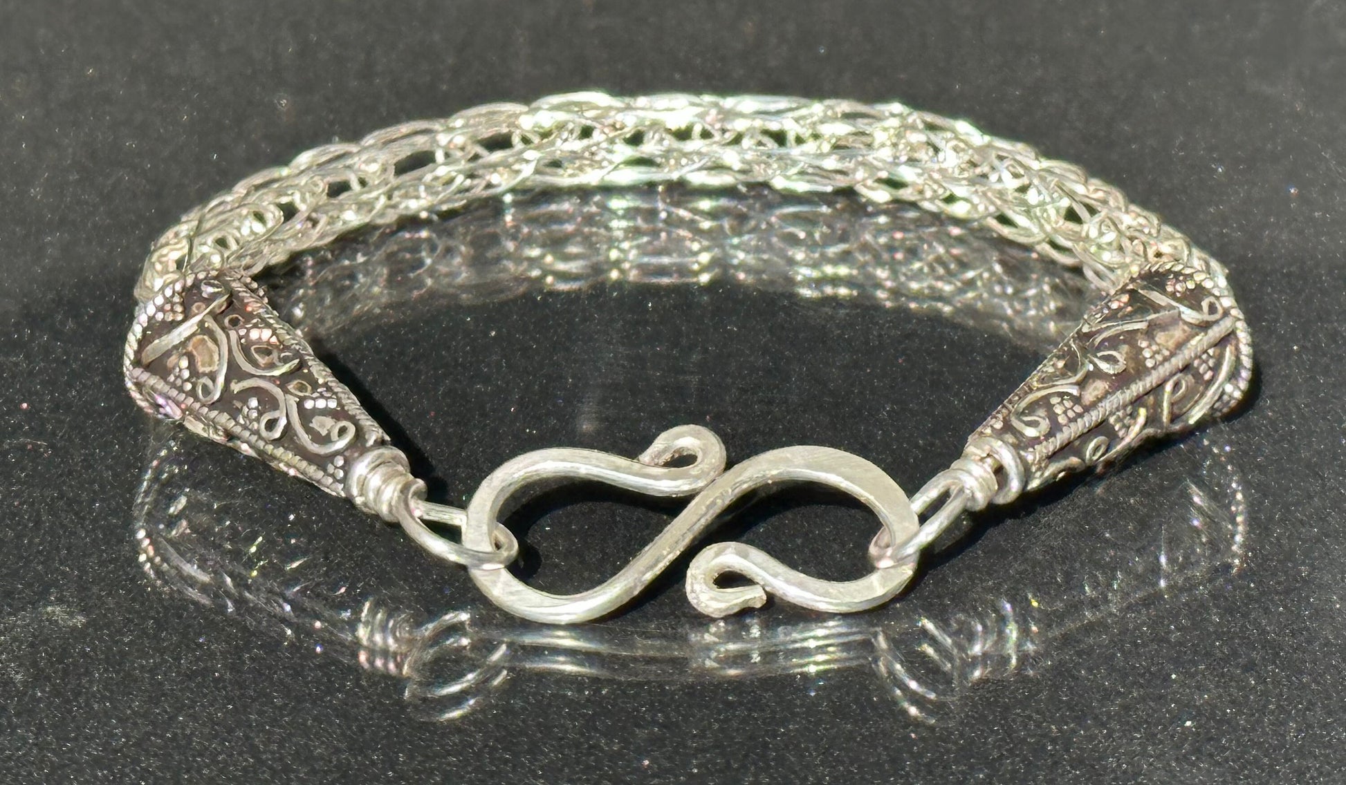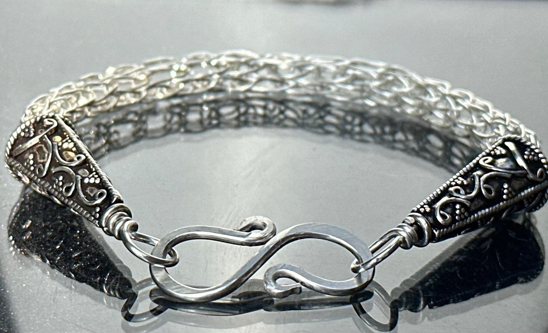 Viking knit fine silver bracelet unisex 8” bracelet with sterling silver end caps.